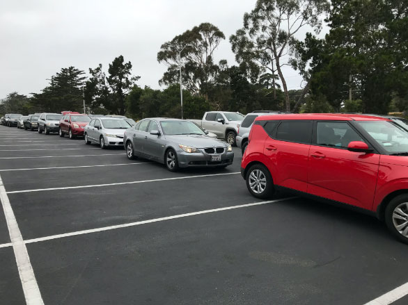 We are currently providing nutritious food through weekly drive-up distribution sites, which are the safest way to distribute food and protect public health. We created over 50 new countywide sites, including one for seniors only and school sites for students and their families. We have sites in each city and many school locations across Monterey County’s 3700 square-mile area from San Ardo to Pajaro to mitigate crowds and hold multiple distributions each day. Each site serves 600-800 families and we have miles-long lines even before they open. Essential food we provide can include fresh produce, eggs, dairy, and protein when available. It is distributed on a first-come, first-served basis via a drive-thru (and walk-up)
